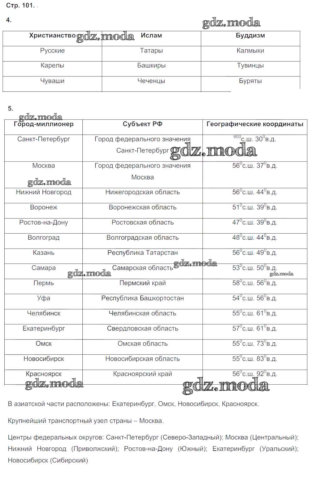 ГДЗ решение к заданию № 101 География 8 класс тетрадь-тренажёр Ольховая Н.В. Просвещение 2016 ФГОС бесплатно на гдз.мода!