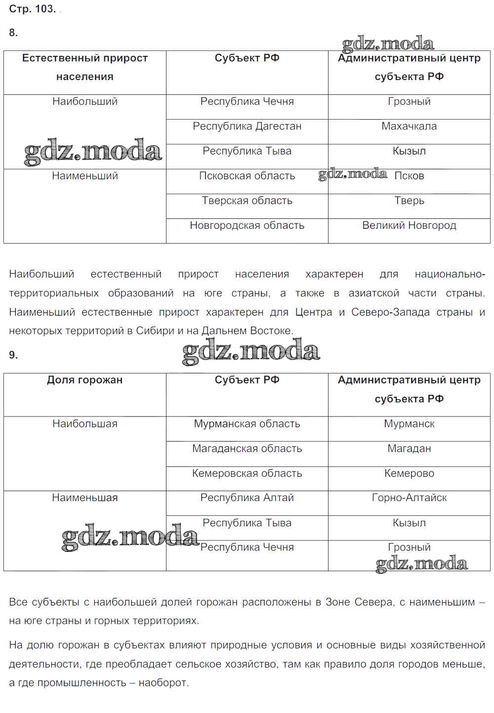 ГДЗ решение к заданию № 103 География 8 класс тетрадь-тренажёр Ольховая Н.В. Просвещение 2016 ФГОС бесплатно на гдз.мода!
