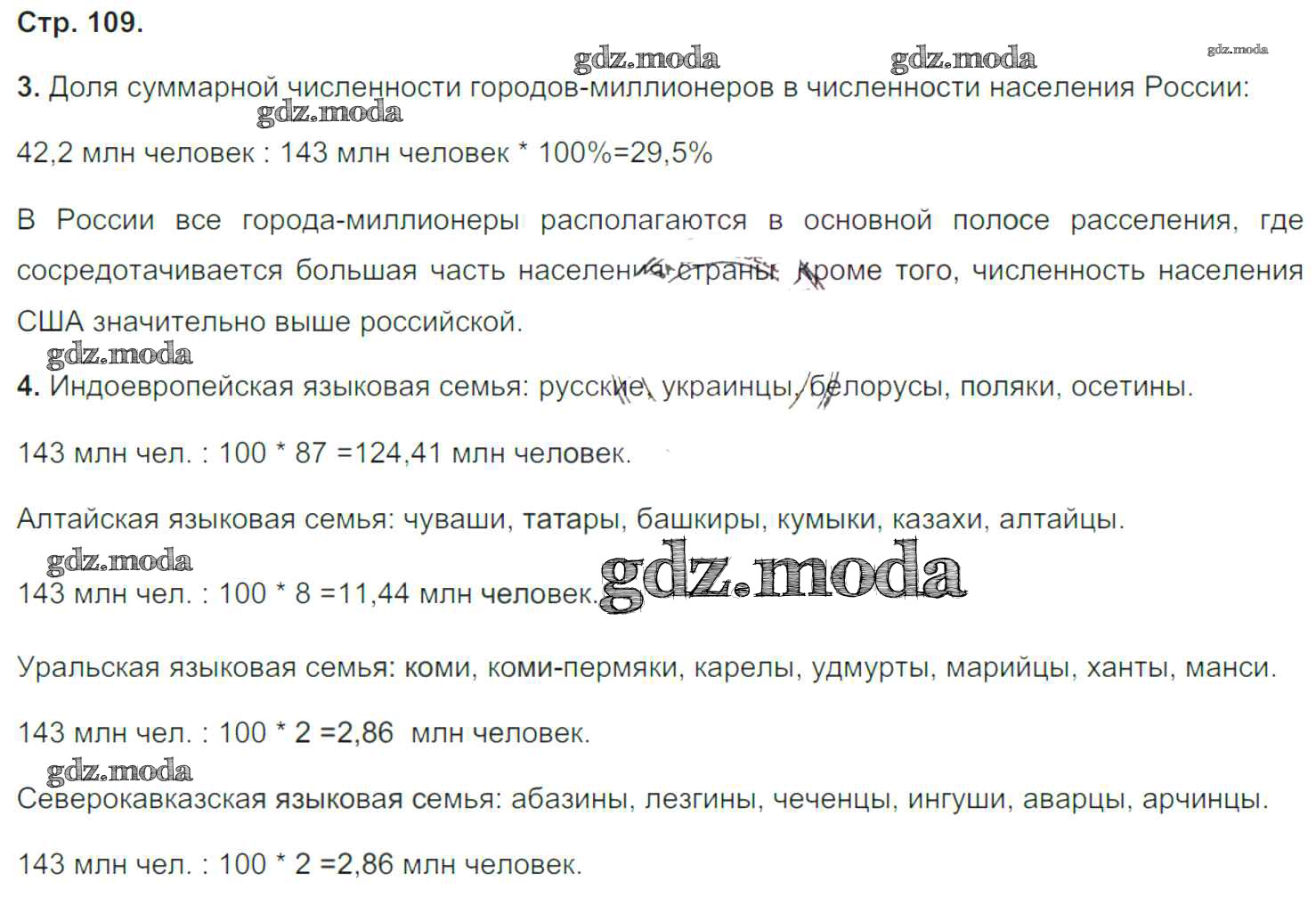 ГДЗ решение к заданию № 109 География 8 класс тетрадь-тренажёр Ольховая Н.В. Просвещение 2016 ФГОС бесплатно на гдз.мода!