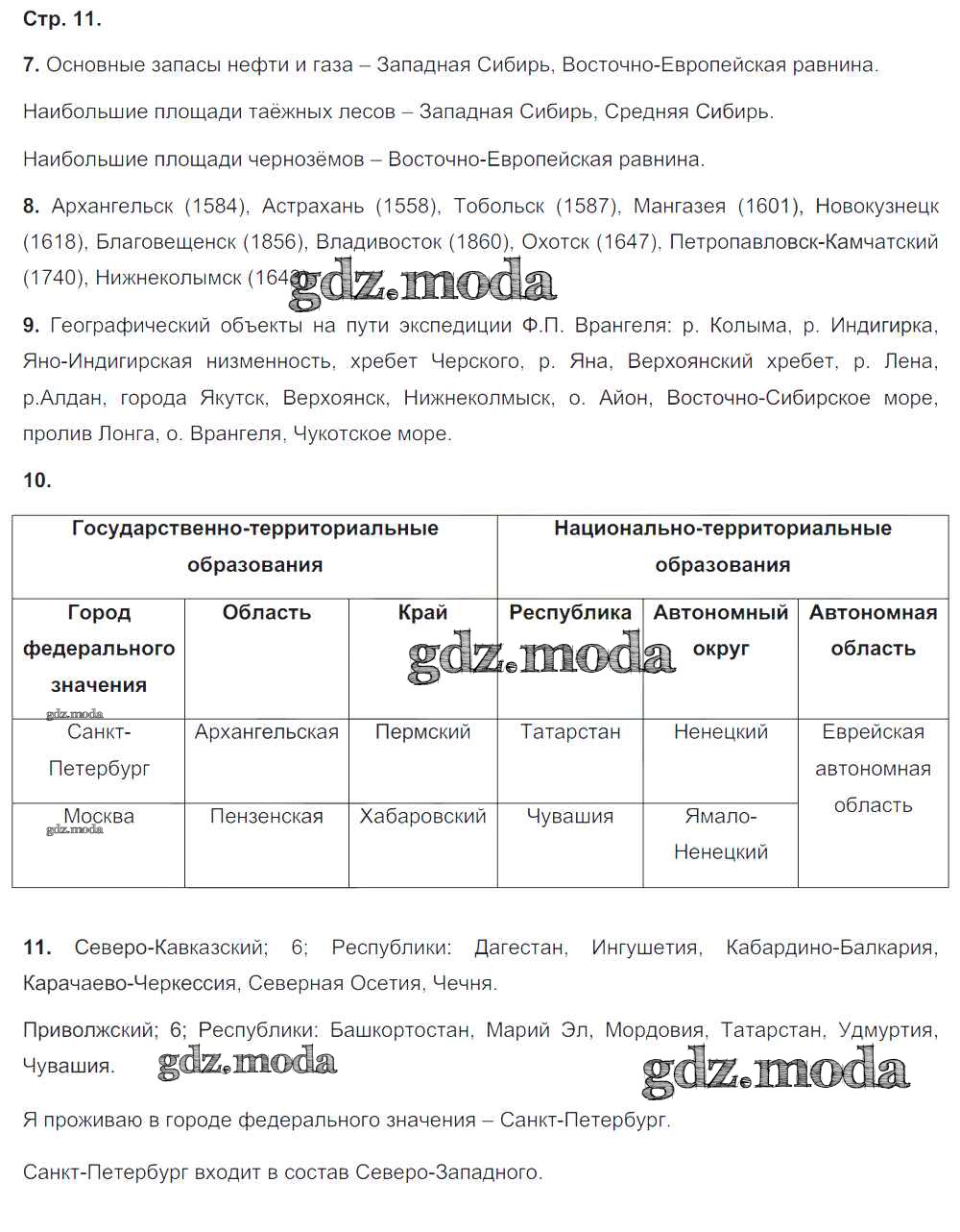 ГДЗ решение к заданию № 11 География 8 класс тетрадь-тренажёр Ольховая Н.В. Просвещение 2016 ФГОС бесплатно на гдз.мода!