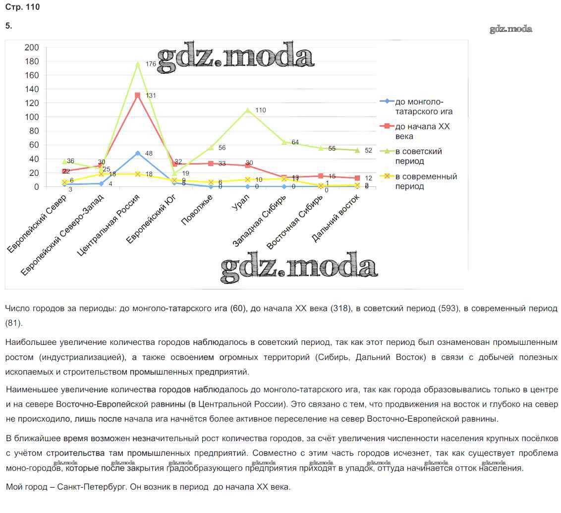 ГДЗ решение к заданию № 110 География 8 класс тетрадь-тренажёр Ольховая Н.В. Просвещение 2016 ФГОС бесплатно на гдз.мода!