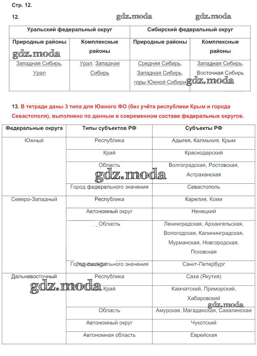 ГДЗ решение к заданию № 12 География 8 класс тетрадь-тренажёр Ольховая Н.В. Просвещение 2016 ФГОС бесплатно на гдз.мода!