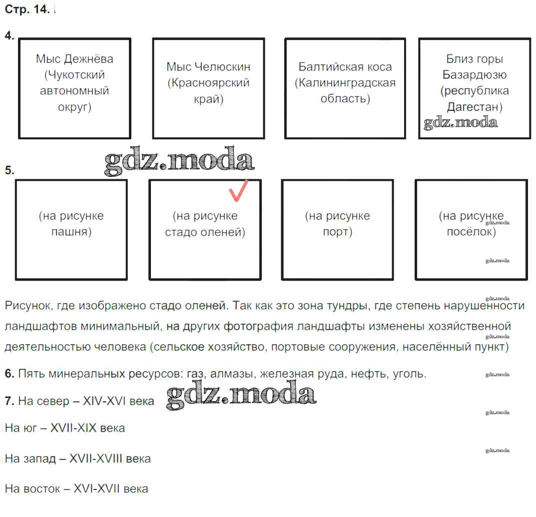 ГДЗ решение к заданию № 14 География 8 класс тетрадь-тренажёр Ольховая Н.В. Просвещение 2016 ФГОС бесплатно на гдз.мода!