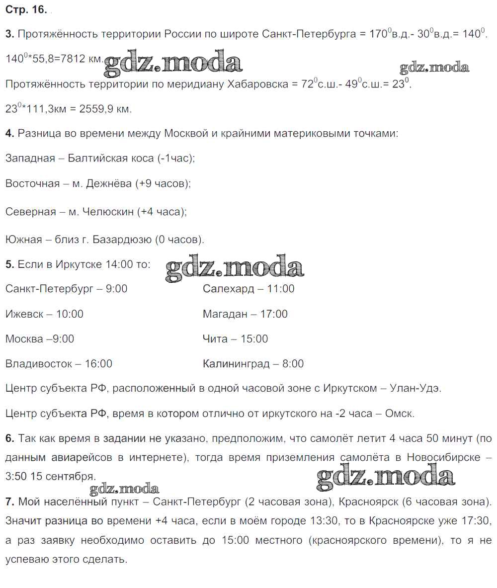 ГДЗ решение к заданию № 16 География 8 класс тетрадь-тренажёр Ольховая Н.В. Просвещение 2016 ФГОС бесплатно на гдз.мода!