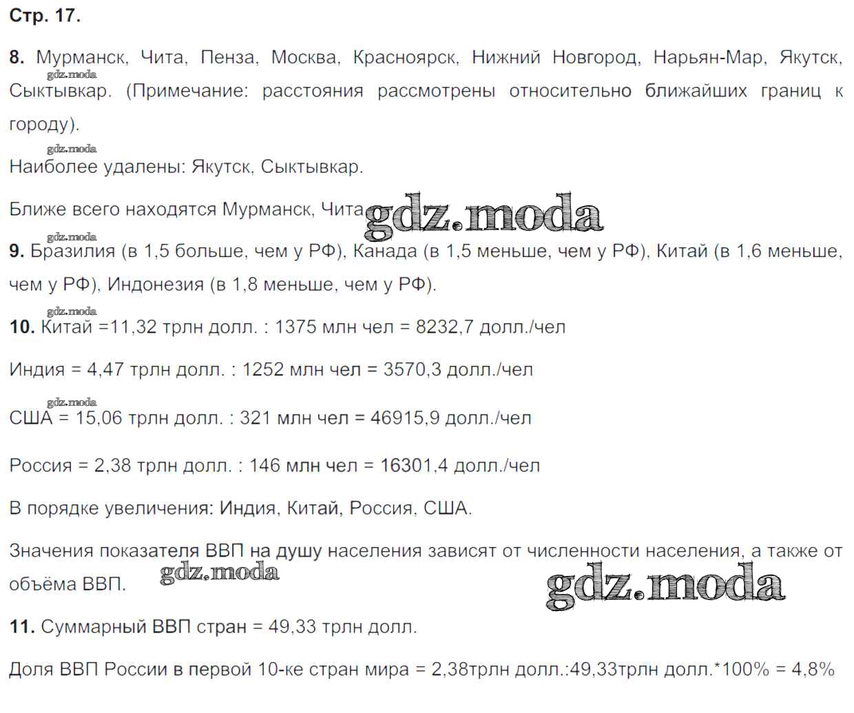 ГДЗ решение к заданию № 17 География 8 класс тетрадь-тренажёр Ольховая Н.В. Просвещение 2016 ФГОС бесплатно на гдз.мода!