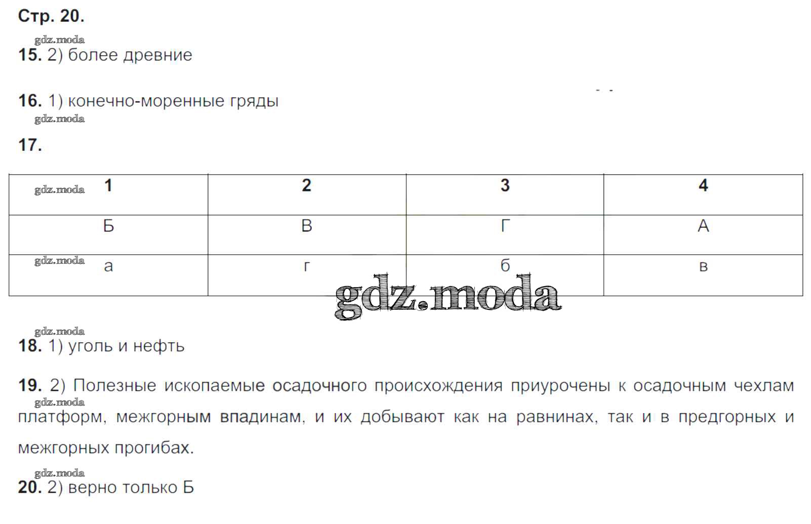 ГДЗ решение к заданию № 20 География 8 класс тетрадь-тренажёр Ольховая Н.В. Просвещение 2016 ФГОС бесплатно на гдз.мода!