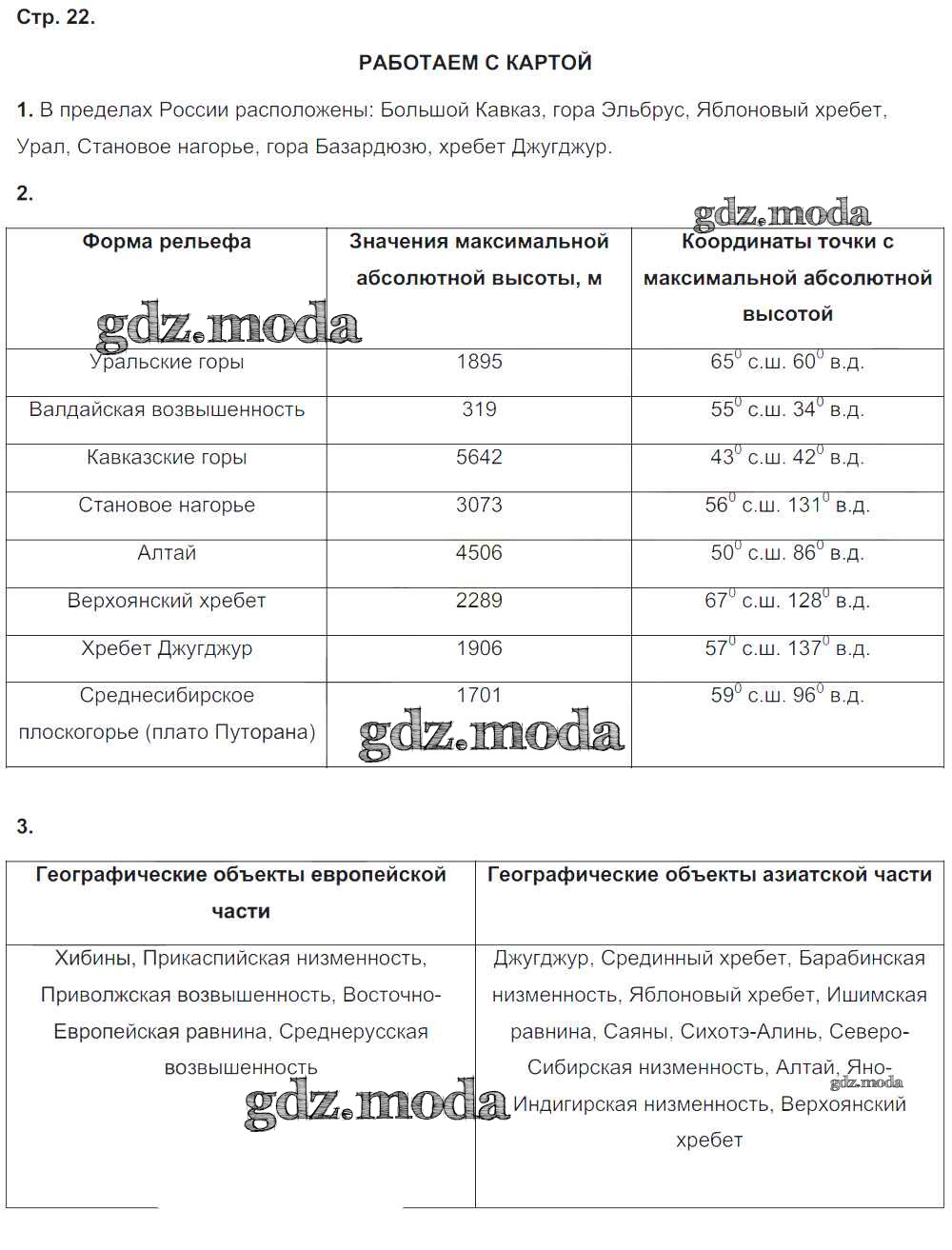 ГДЗ решение к заданию № 22 География 8 класс тетрадь-тренажёр Ольховая Н.В. Просвещение 2016 ФГОС бесплатно на гдз.мода!