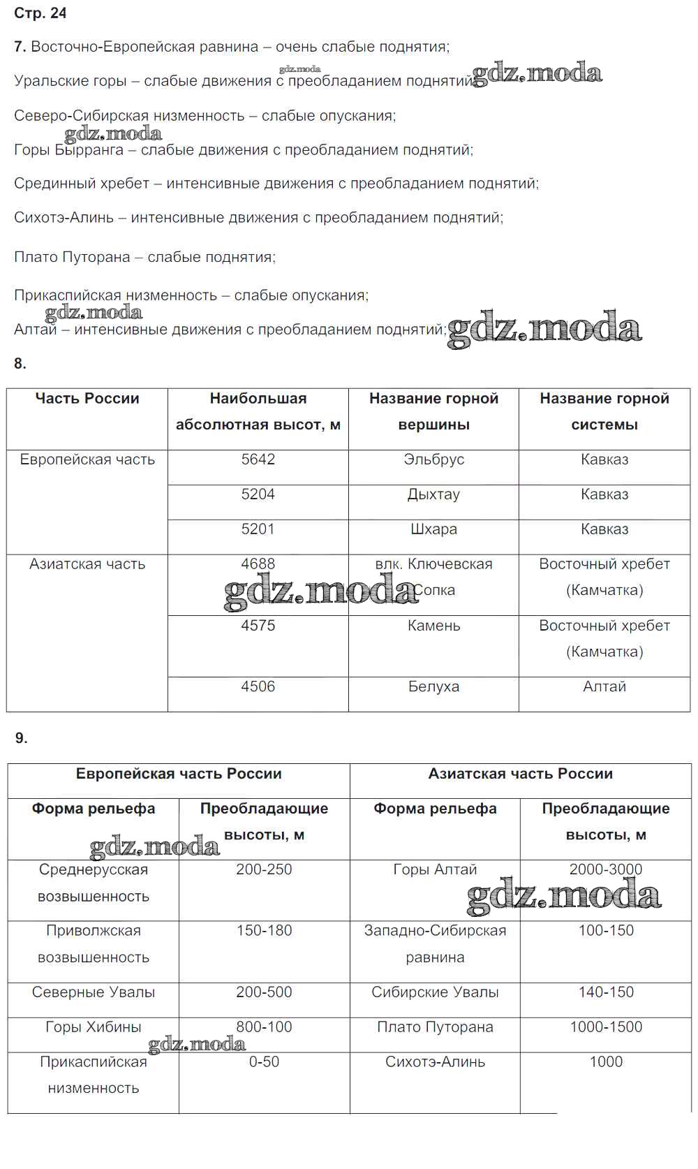 ГДЗ решение к заданию № 24 География 8 класс тетрадь-тренажёр Ольховая Н.В. Просвещение 2016 ФГОС бесплатно на гдз.мода!