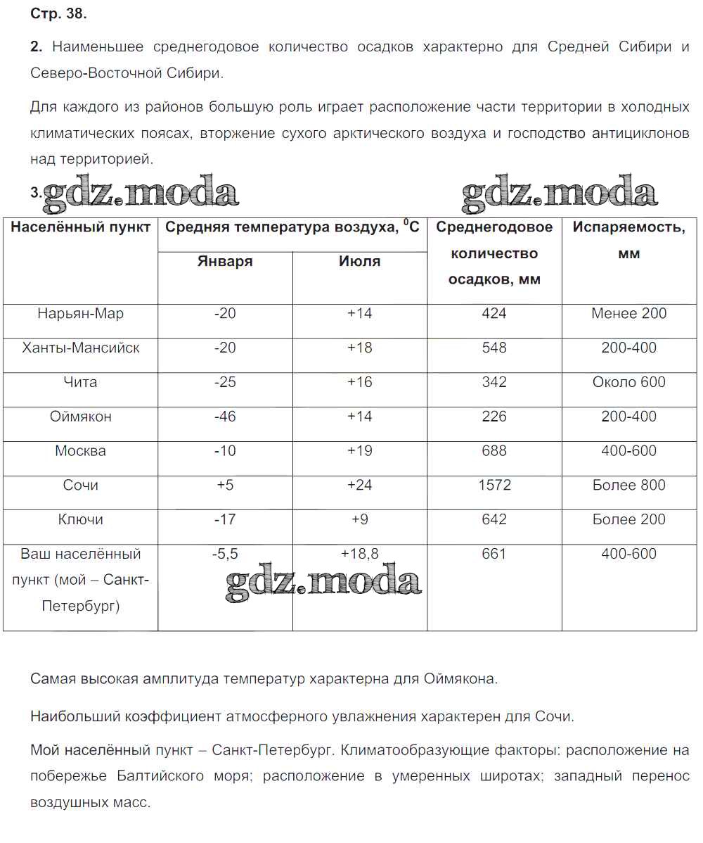 ГДЗ решение к заданию № 38 География 8 класс тетрадь-тренажёр Ольховая Н.В. Просвещение 2016 ФГОС бесплатно на гдз.мода!