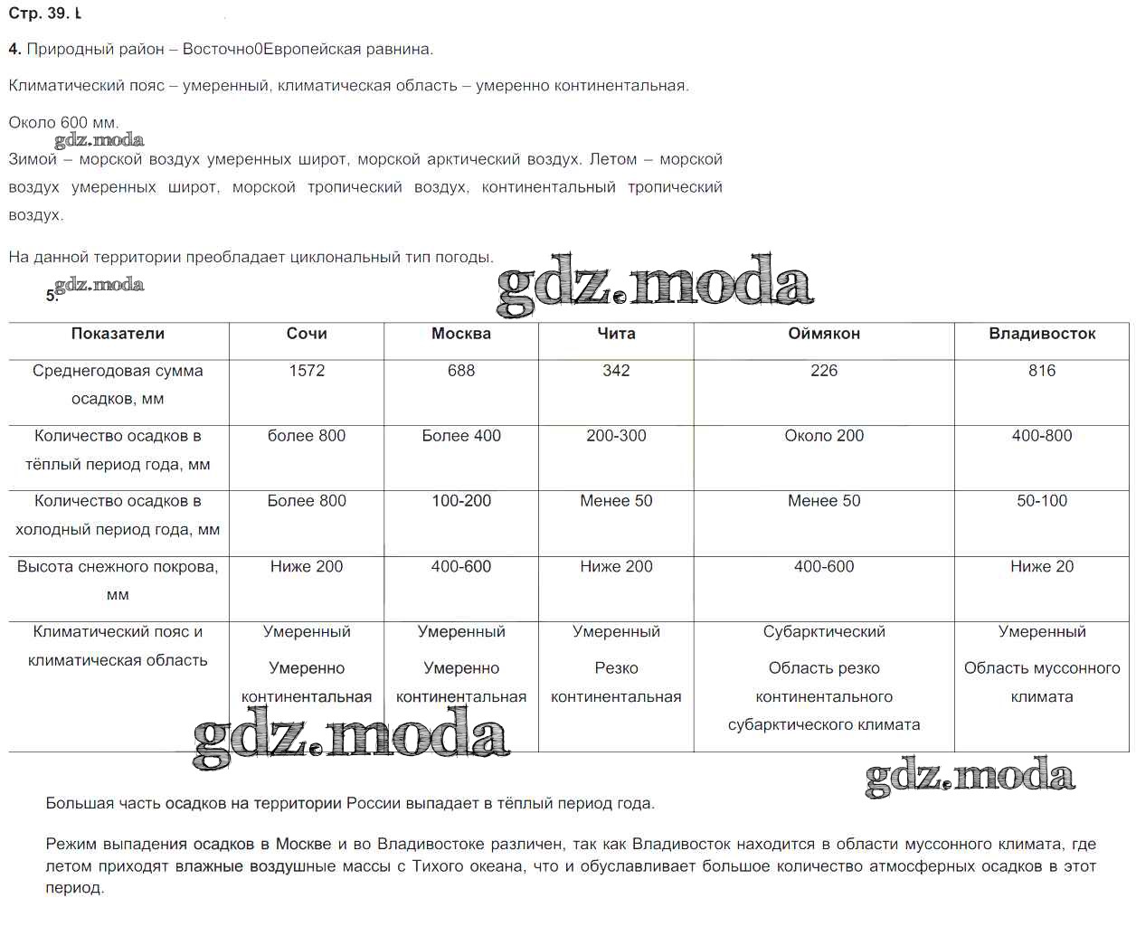 ГДЗ решение к заданию № 39 География 8 класс тетрадь-тренажёр Ольховая Н.В. Просвещение 2016 ФГОС бесплатно на гдз.мода!