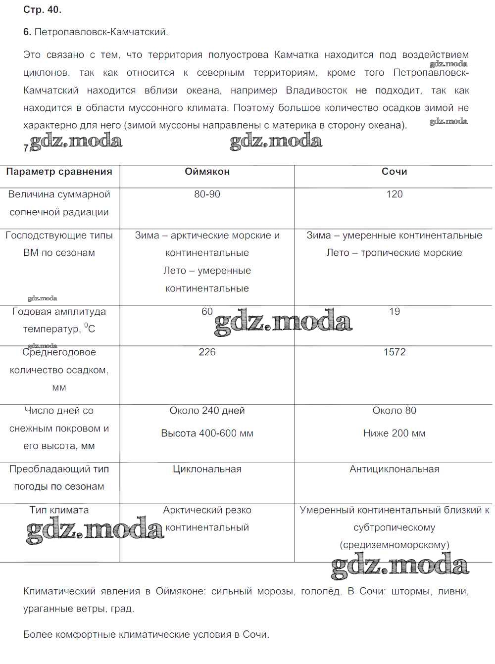 ГДЗ решение к заданию № 40 География 8 класс тетрадь-тренажёр Ольховая Н.В. Просвещение 2016 ФГОС бесплатно на гдз.мода!