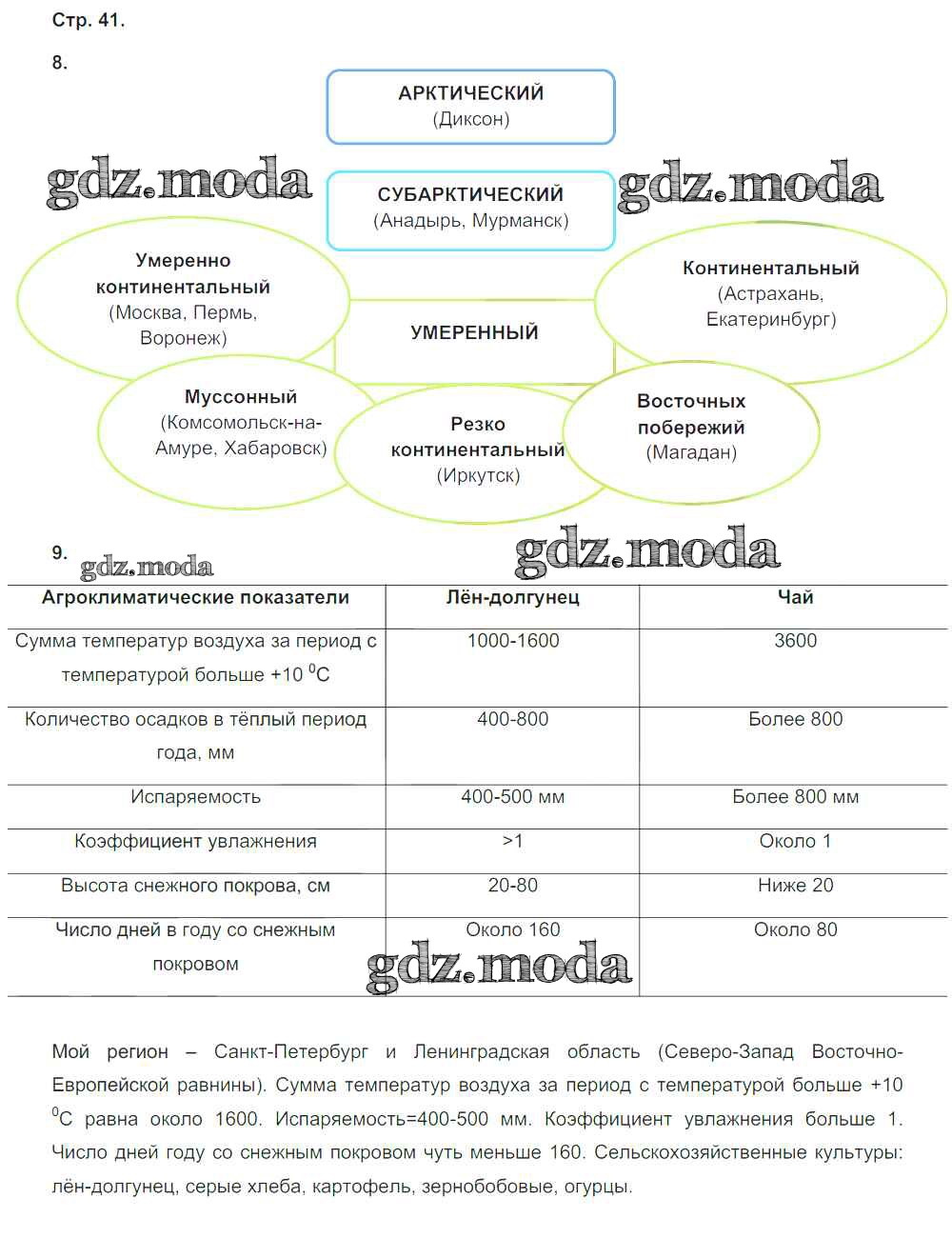 ГДЗ решение к заданию № 41 География 8 класс тетрадь-тренажёр Ольховая Н.В. Просвещение 2016 ФГОС бесплатно на гдз.мода!