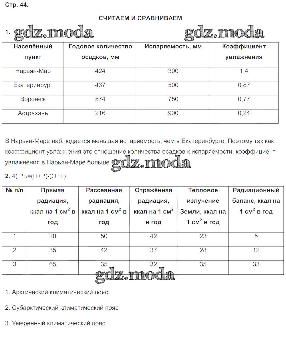 ГДЗ решение к заданию № 44 География 8 класс тетрадь-тренажёр Ольховая Н.В. Просвещение 2016 ФГОС бесплатно на гдз.мода!