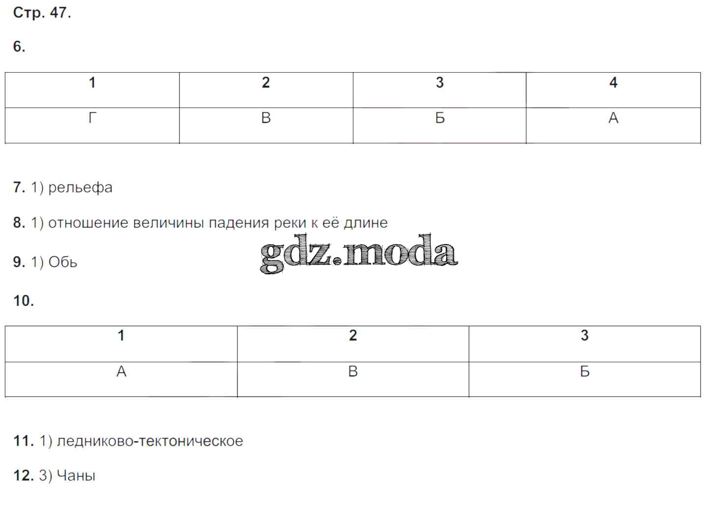 ГДЗ решение к заданию № 47 География 8 класс тетрадь-тренажёр Ольховая Н.В. Просвещение 2016 ФГОС бесплатно на гдз.мода!
