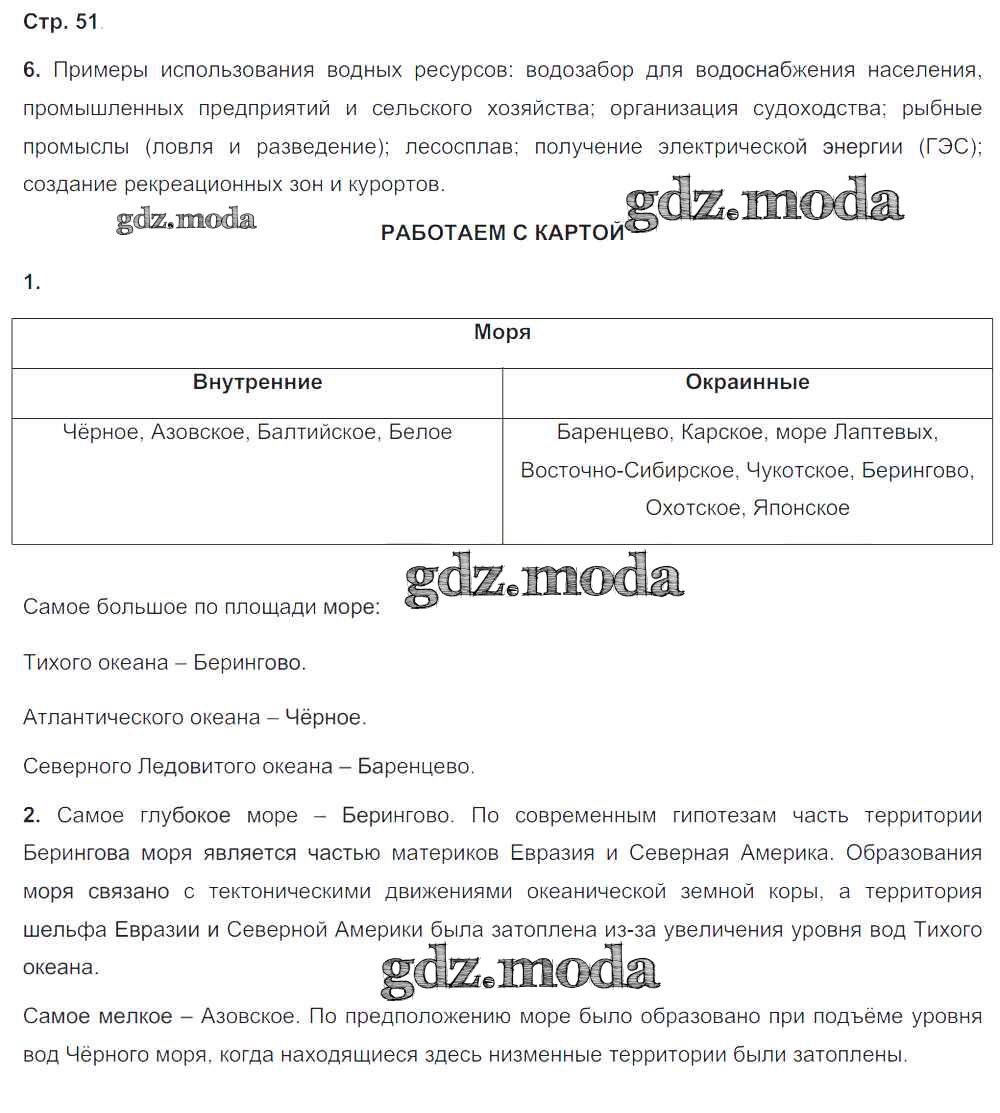 ГДЗ решение к заданию № 51 География 8 класс тетрадь-тренажёр Ольховая Н.В. Просвещение 2016 ФГОС бесплатно на гдз.мода!