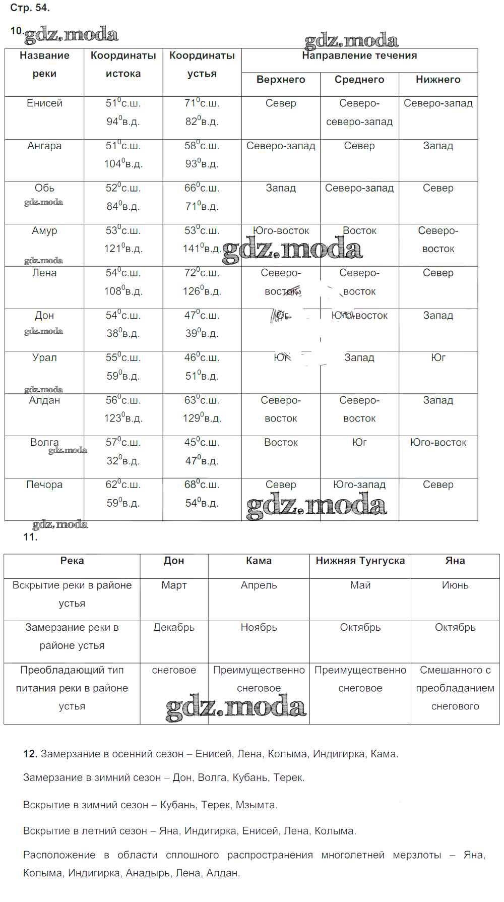 ГДЗ решение к заданию № 54 География 8 класс тетрадь-тренажёр Ольховая Н.В. Просвещение 2016 ФГОС бесплатно на гдз.мода!