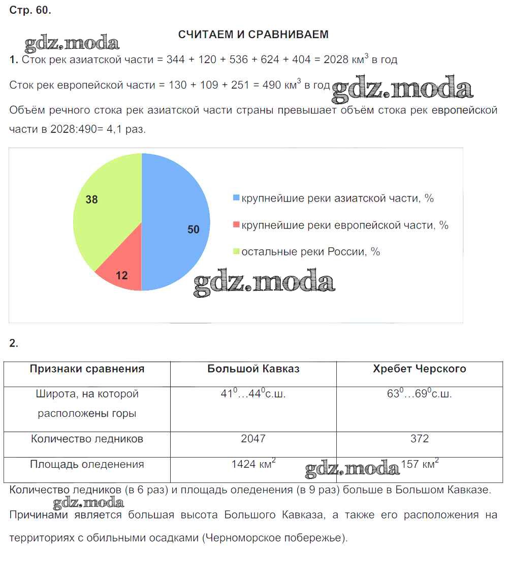 ГДЗ решение к заданию № 60 География 8 класс тетрадь-тренажёр Ольховая Н.В. Просвещение 2016 ФГОС бесплатно на гдз.мода!