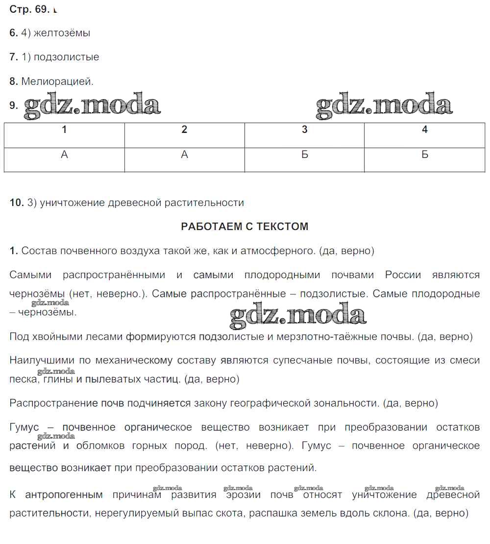 ГДЗ решение к заданию № 69 География 8 класс тетрадь-тренажёр Ольховая Н.В. Просвещение 2016 ФГОС бесплатно на гдз.мода!