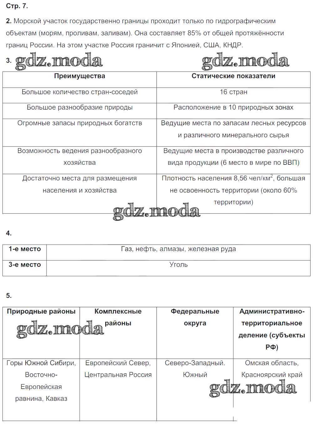 ГДЗ решение к заданию № 7 География 8 класс тетрадь-тренажёр Ольховая Н.В. Просвещение 2016 ФГОС бесплатно на гдз.мода!