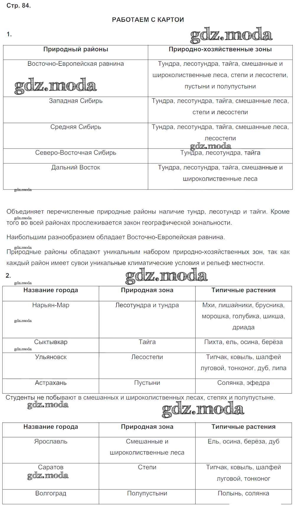 ГДЗ решение к заданию № 84 География 8 класс тетрадь-тренажёр Ольховая Н.В. Просвещение 2016 ФГОС бесплатно на гдз.мода!