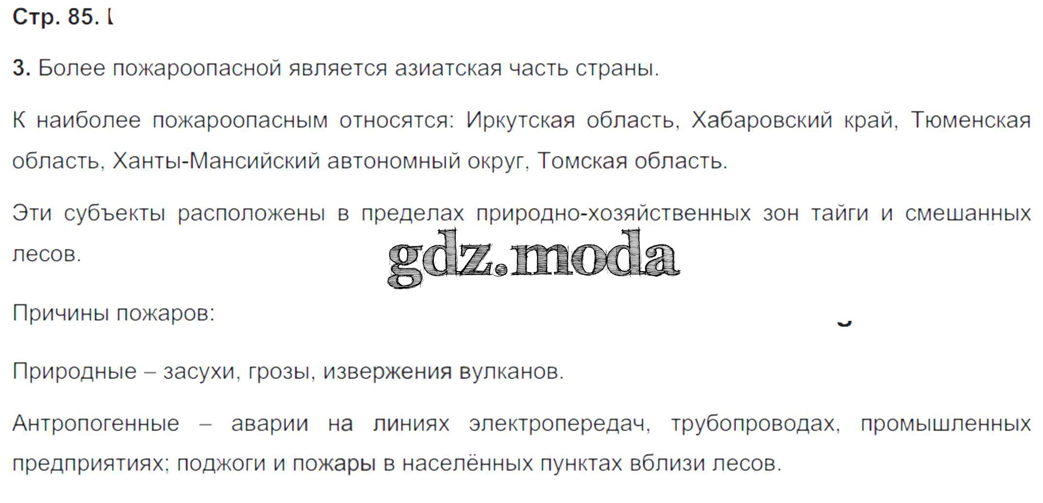 ГДЗ решение к заданию № 85 География 8 класс тетрадь-тренажёр Ольховая Н.В. Просвещение 2016 ФГОС бесплатно на гдз.мода!