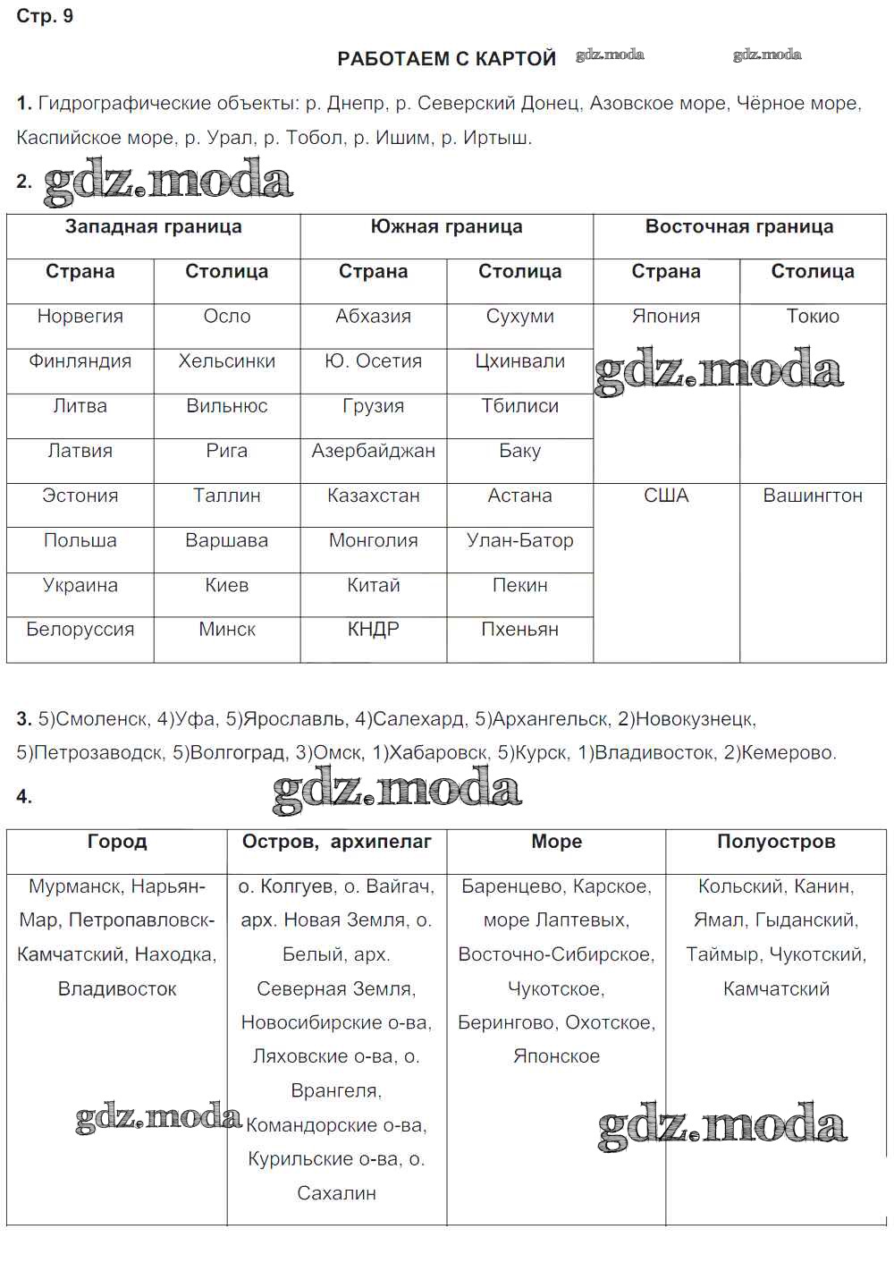 ГДЗ решение к заданию № 9 География 8 класс тетрадь-тренажёр Ольховая Н.В. Просвещение 2016 ФГОС бесплатно на гдз.мода!