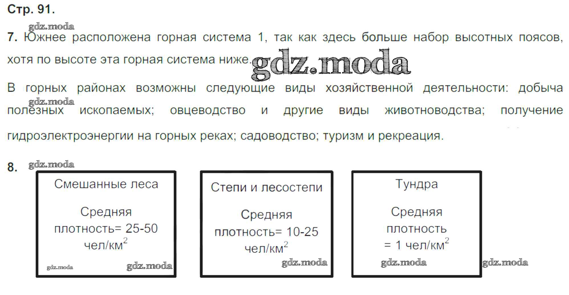 ГДЗ решение к заданию № 91 География 8 класс тетрадь-тренажёр Ольховая Н.В. Просвещение 2016 ФГОС бесплатно на гдз.мода!