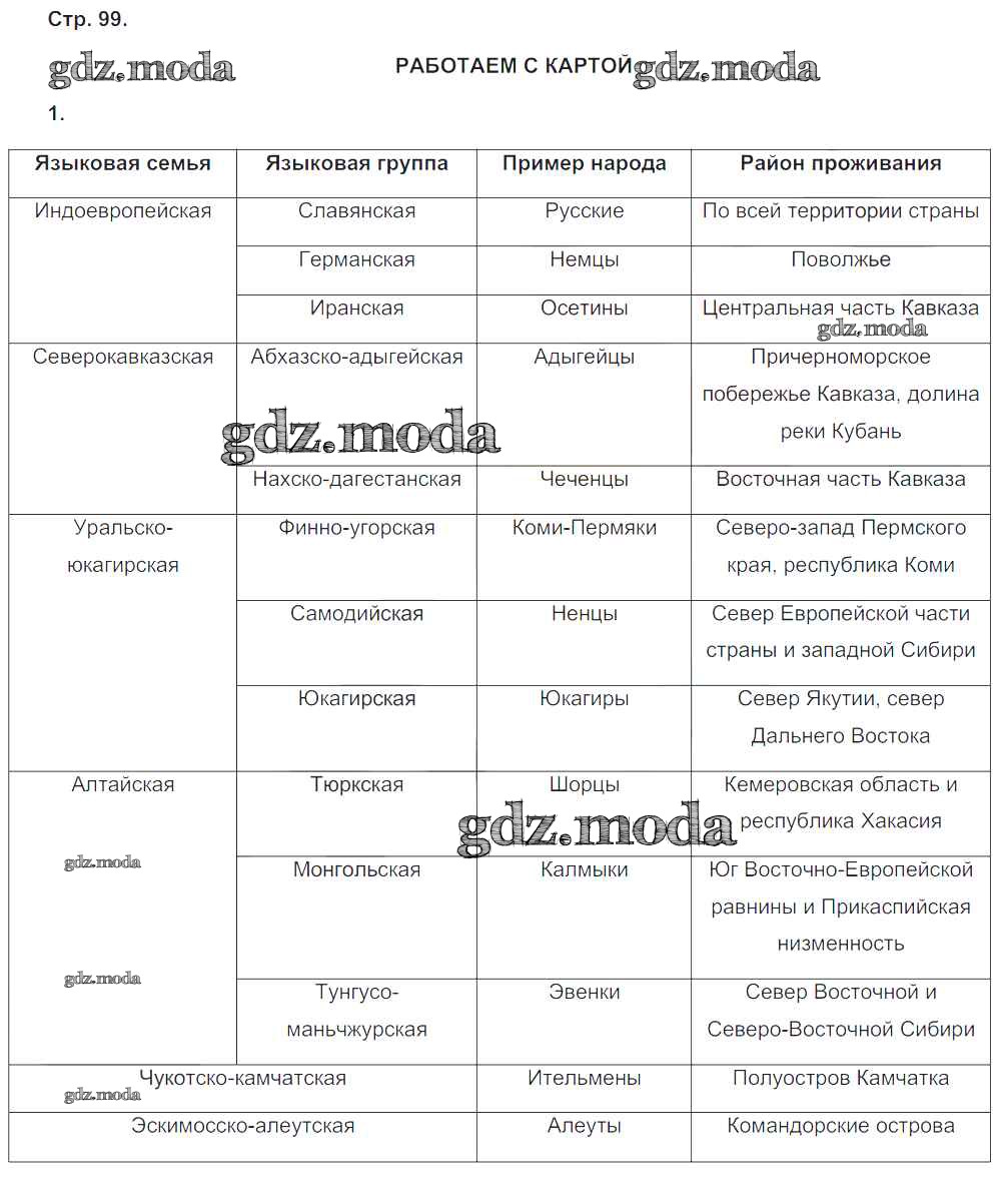 ГДЗ решение к заданию № 99 География 8 класс тетрадь-тренажёр Ольховая Н.В. Просвещение 2016 ФГОС бесплатно на гдз.мода!