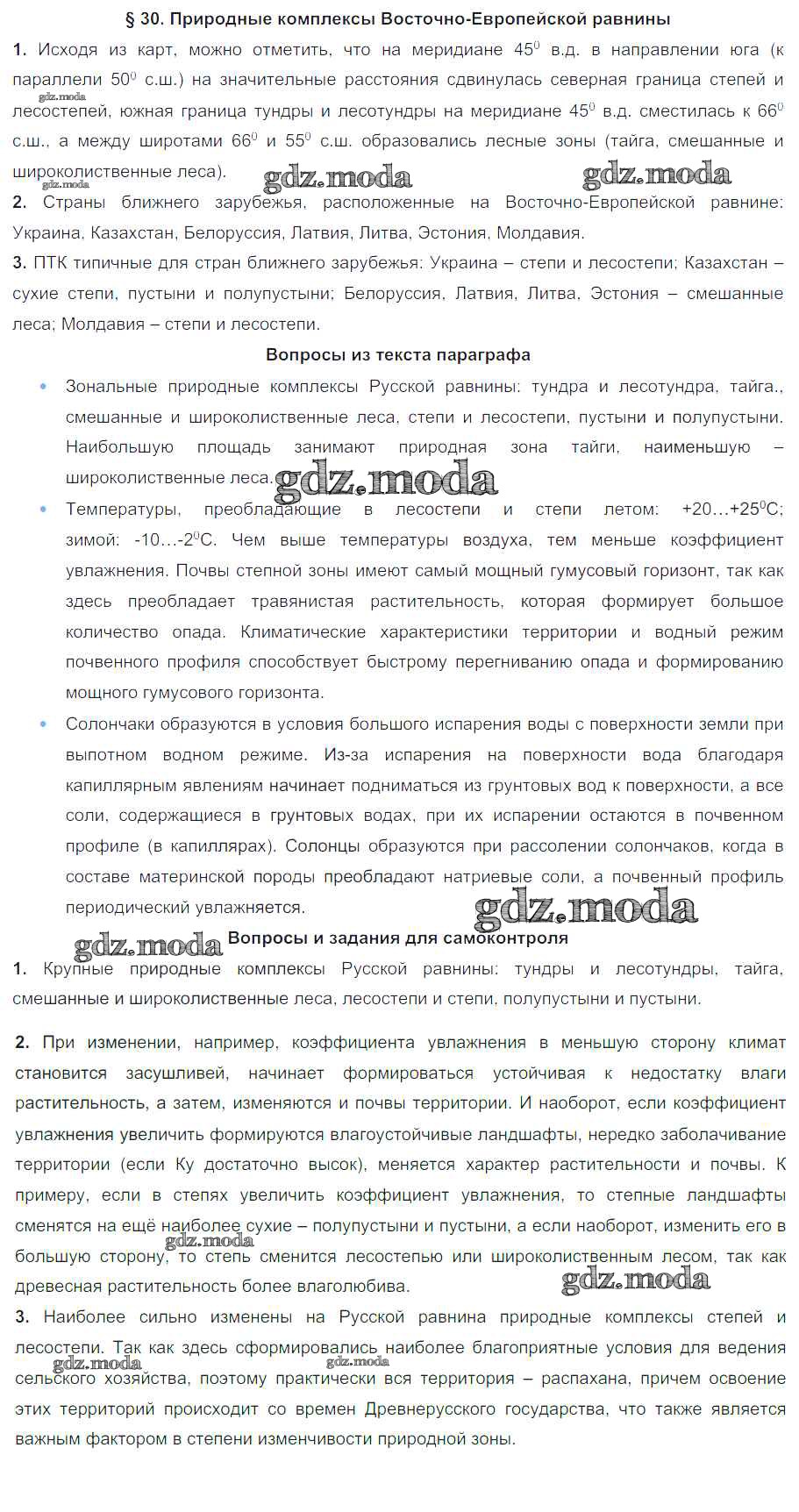 ГДЗ решение к заданию № 30 География 8 класс Природа Баринова И.И. Дрофа 2019 ФГОС бесплатно на гдз.мода!
