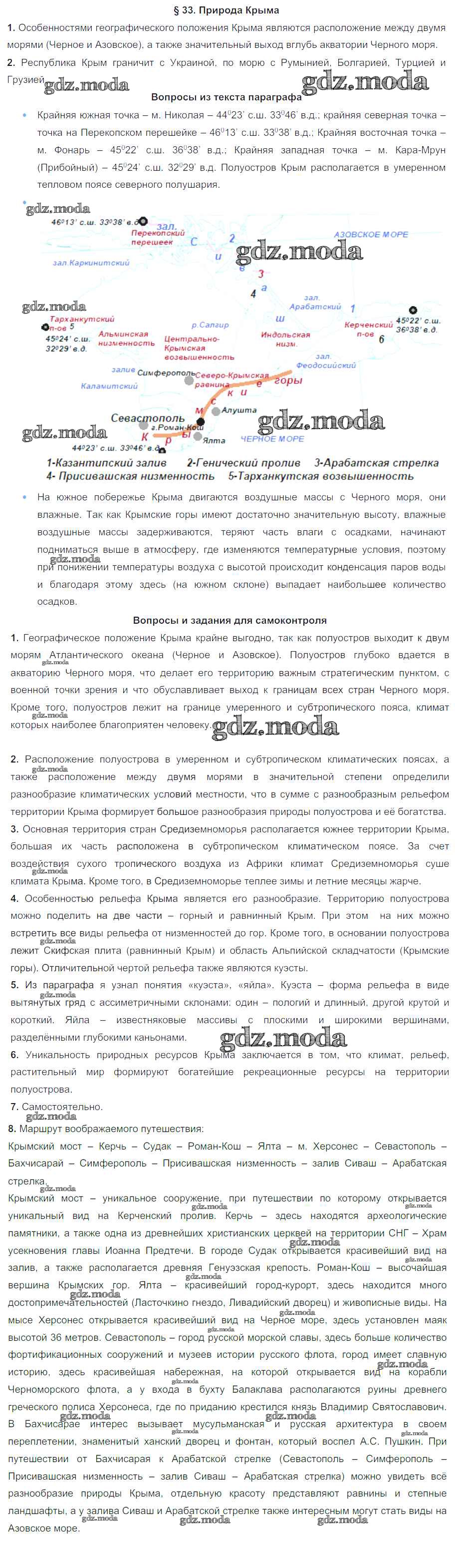 ГДЗ решение к заданию № 33 География 8 класс Природа Баринова И.И. Дрофа 2019 ФГОС бесплатно на гдз.мода!