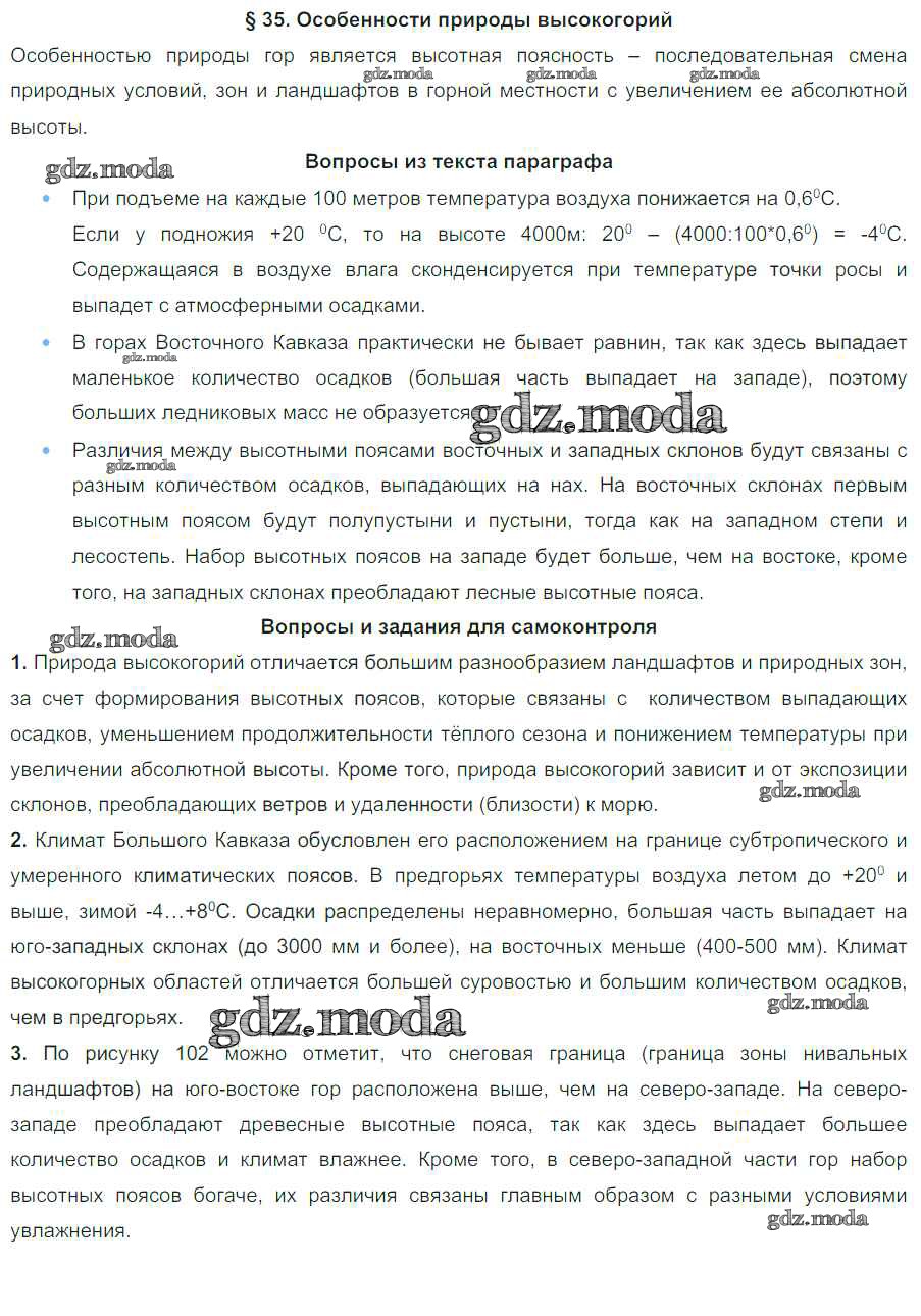 ГДЗ решение к заданию № 35 География 8 класс Природа Баринова И.И. Дрофа 2019 ФГОС бесплатно на гдз.мода!