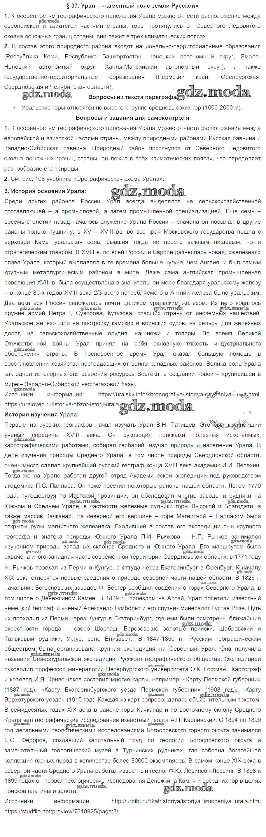 ОТВЕТ на задание № 37 Учебник по Географии 8 класс Баринова УМК