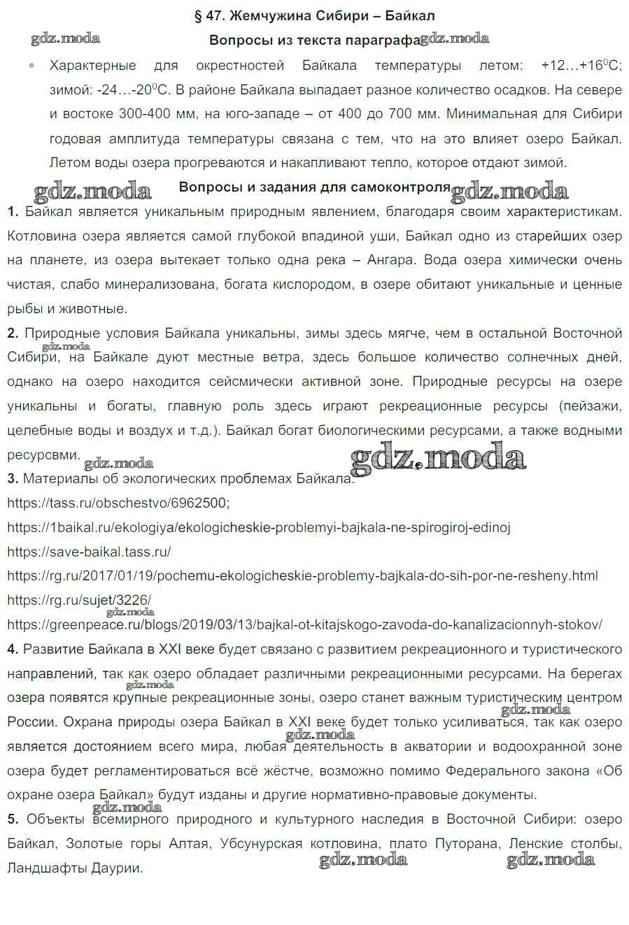 ОТВЕТ на задание № 47 Учебник по Географии 8 класс Баринова УМК
