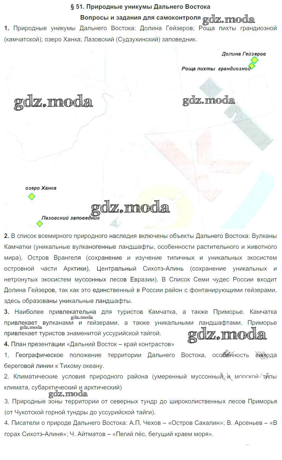 ГДЗ решение к заданию № 51 География 8 класс Природа Баринова И.И. Дрофа 2019 ФГОС бесплатно на гдз.мода!