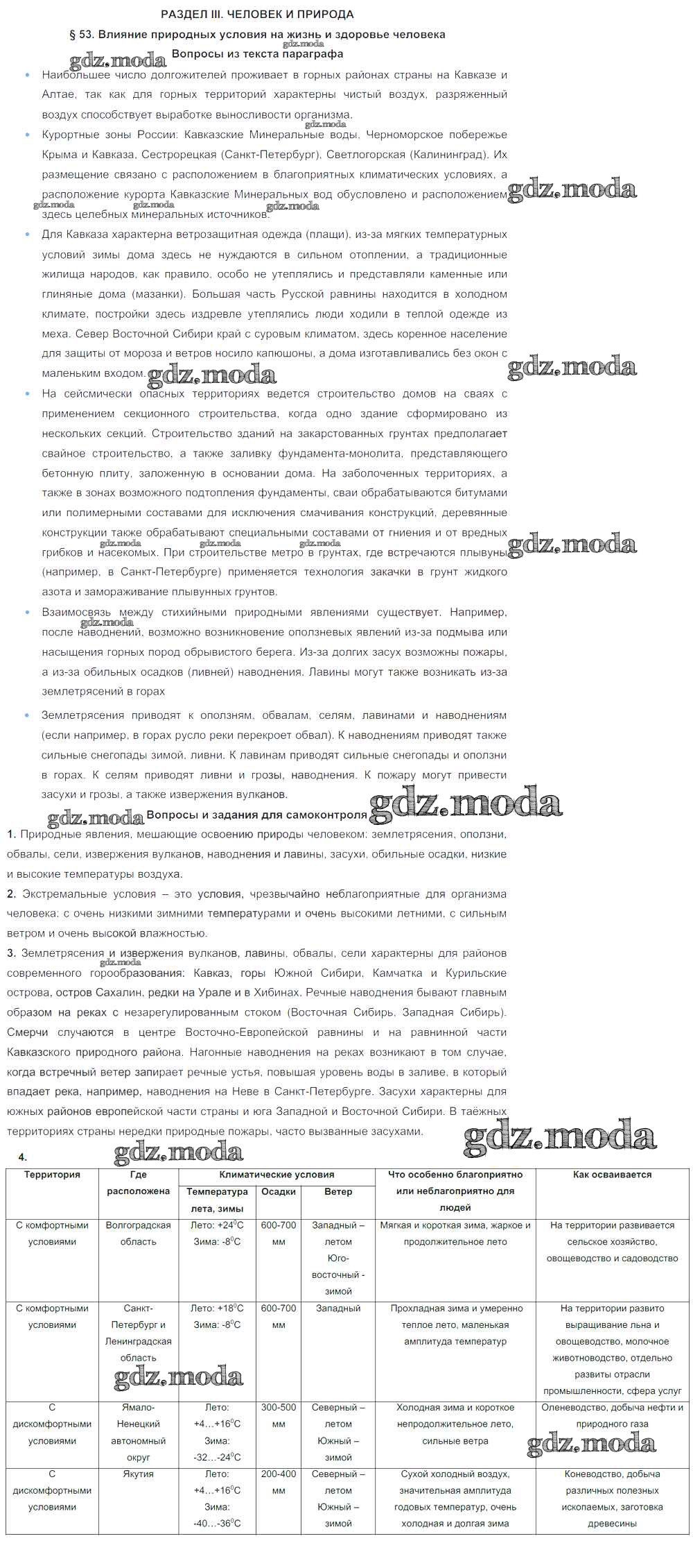 ГДЗ решение к заданию № 53 География 8 класс Природа Баринова И.И. Дрофа 2019 ФГОС бесплатно на гдз.мода!