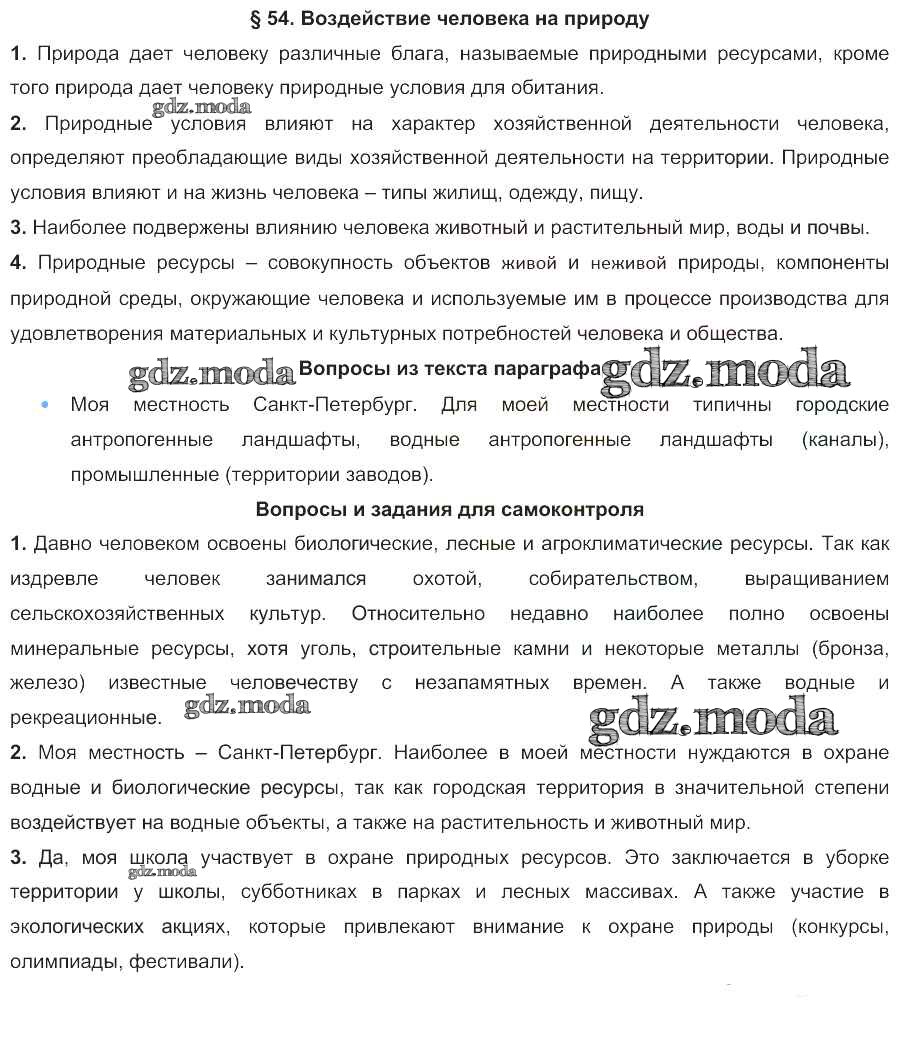 ГДЗ решение к заданию № 54 География 8 класс Природа Баринова И.И. Дрофа 2019 ФГОС бесплатно на гдз.мода!