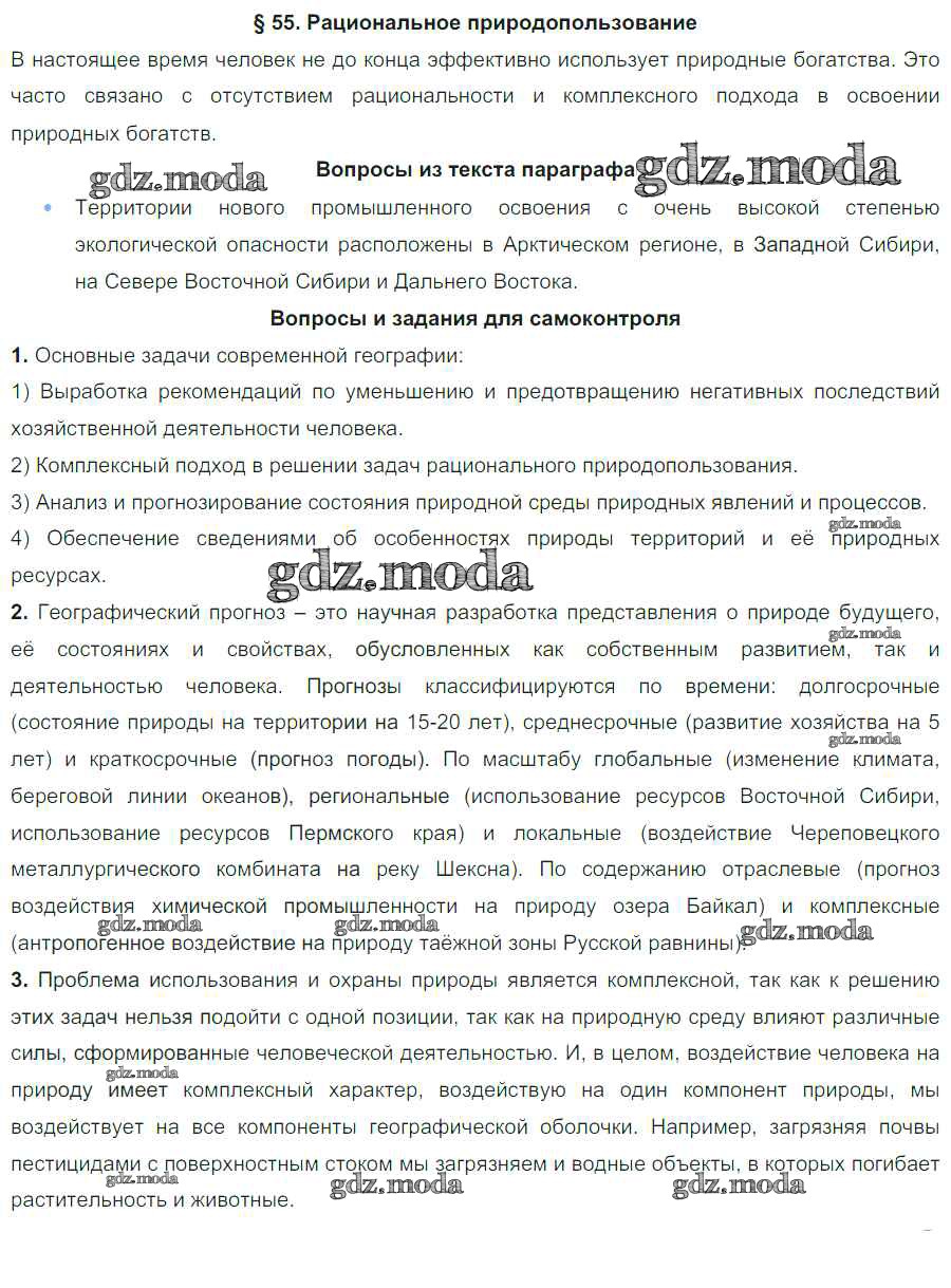 ГДЗ решение к заданию № 55 География 8 класс Природа Баринова И.И. Дрофа 2019 ФГОС бесплатно на гдз.мода!