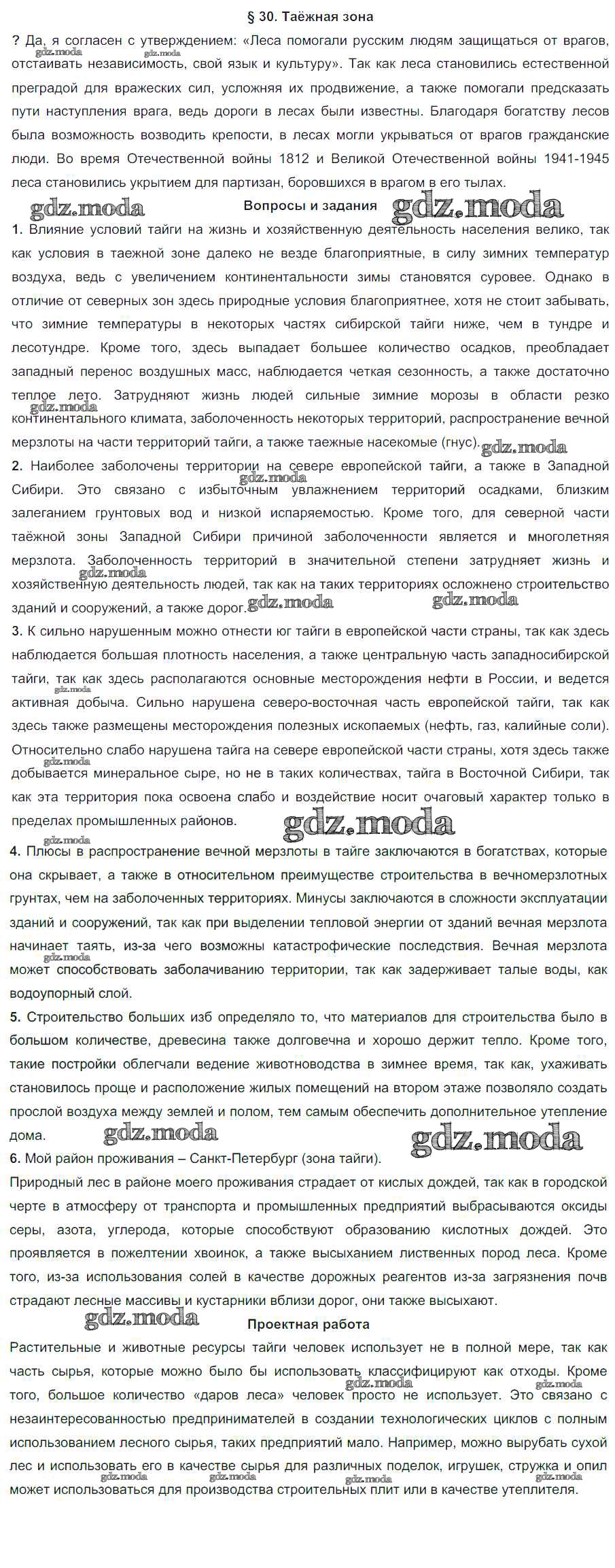 ГДЗ решение к заданию № 30 География 8 класс Алексеев А.И. Дрофа 2018 ФГОС бесплатно на гдз.мода!