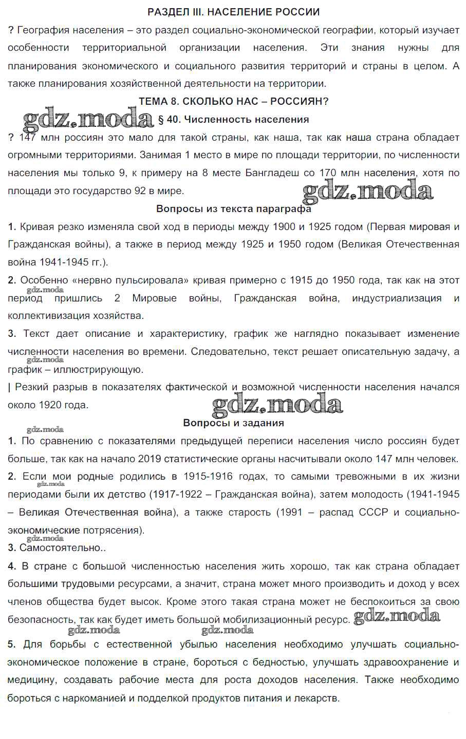 ГДЗ решение к заданию № 40 География 8 класс Алексеев А.И. Дрофа 2018 ФГОС бесплатно на гдз.мода!