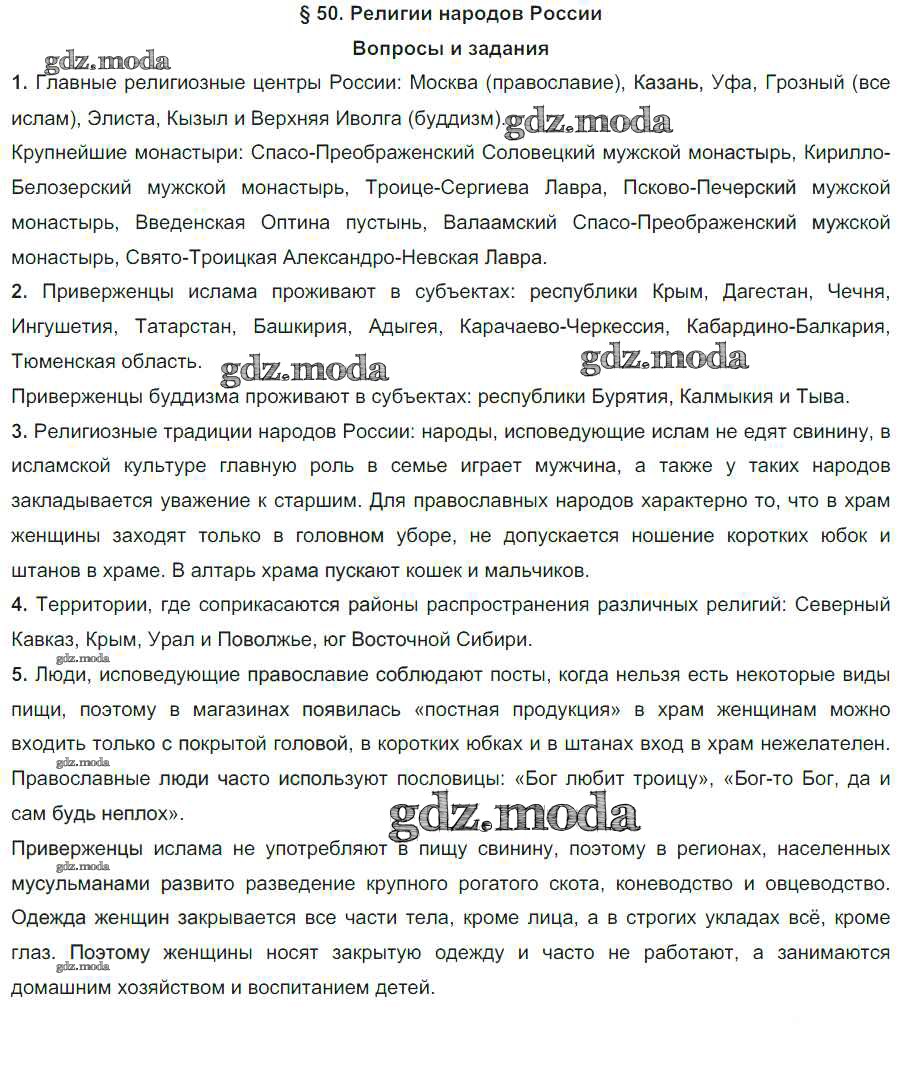 ГДЗ решение к заданию № 50 География 8 класс Алексеев А.И. Дрофа 2018 ФГОС бесплатно на гдз.мода!
