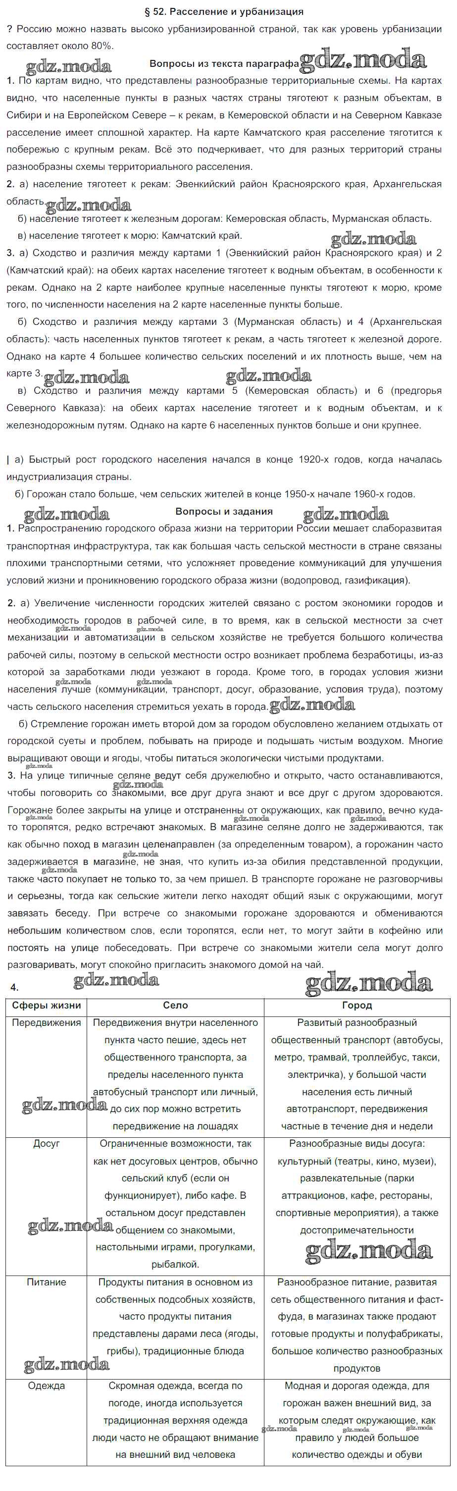 ГДЗ решение к заданию № 52 География 8 класс Алексеев А.И. Дрофа 2018 ФГОС бесплатно на гдз.мода!