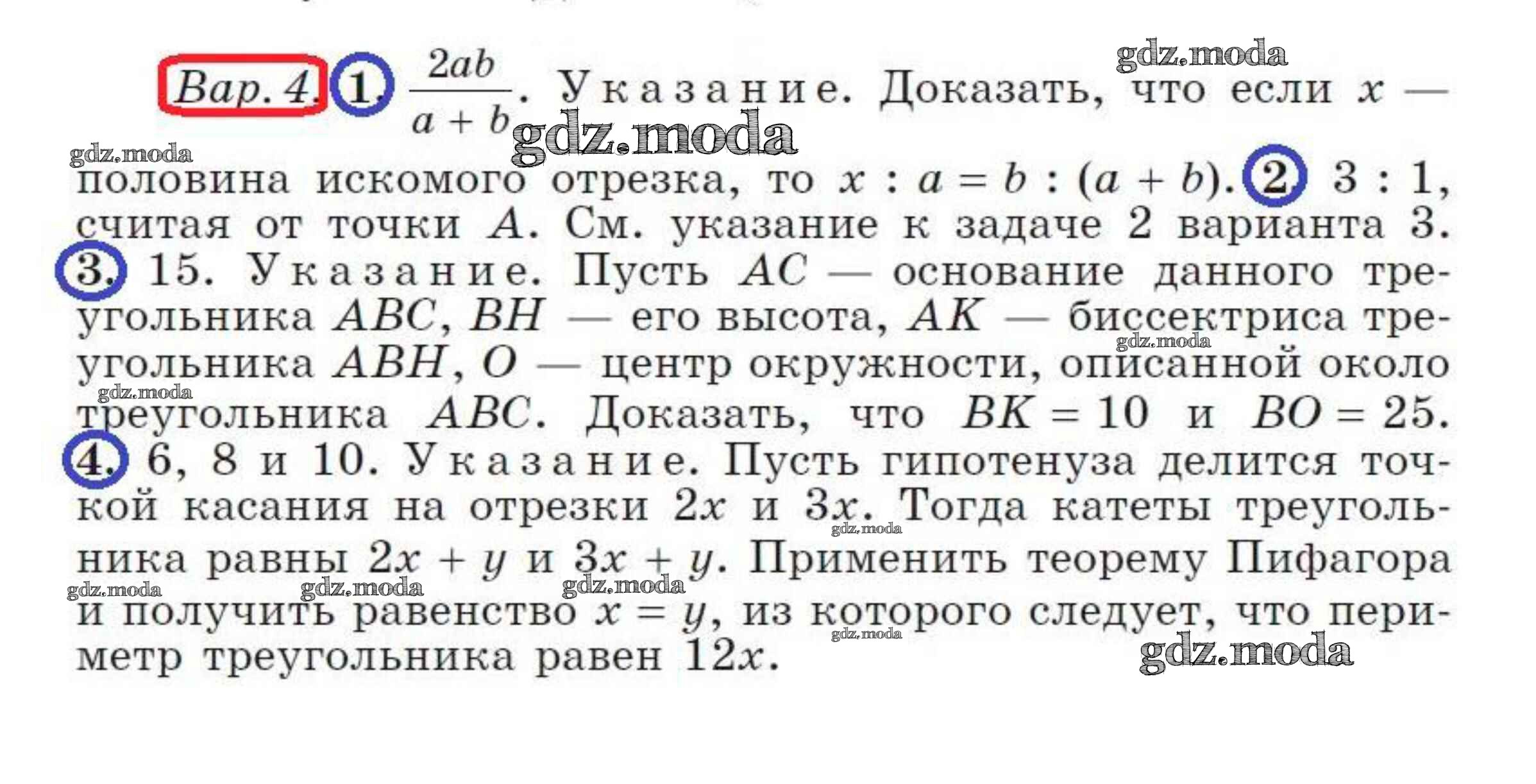 ОТВЕТ на задание № 4 Дидактические материалы по Геометрии 8 класс Бутузов МГУ - школе