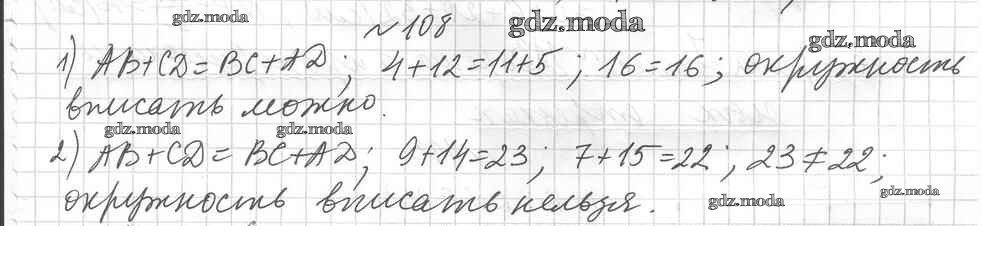 ОТВЕТ на задание № 108 Дидактические материалы по Геометрии 8 класс Мерзляк Алгоритм успеха