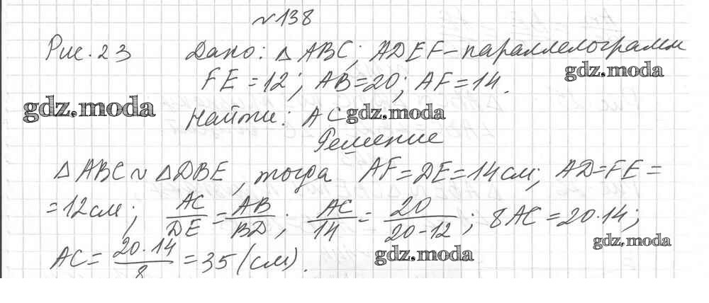 ОТВЕТ на задание № 138 Дидактические материалы по Геометрии 8 класс Мерзляк Алгоритм успеха