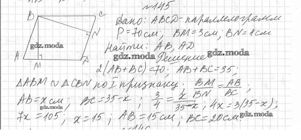 ОТВЕТ на задание № 145 Дидактические материалы по Геометрии 8 класс Мерзляк Алгоритм успеха