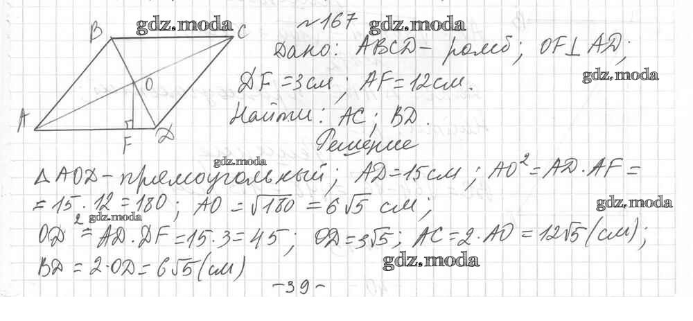 ОТВЕТ на задание № 167 Дидактические материалы по Геометрии 8 класс Мерзляк Алгоритм успеха