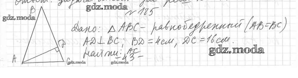 ОТВЕТ на задание № 185 Дидактические материалы по Геометрии 8 класс Мерзляк Алгоритм успеха
