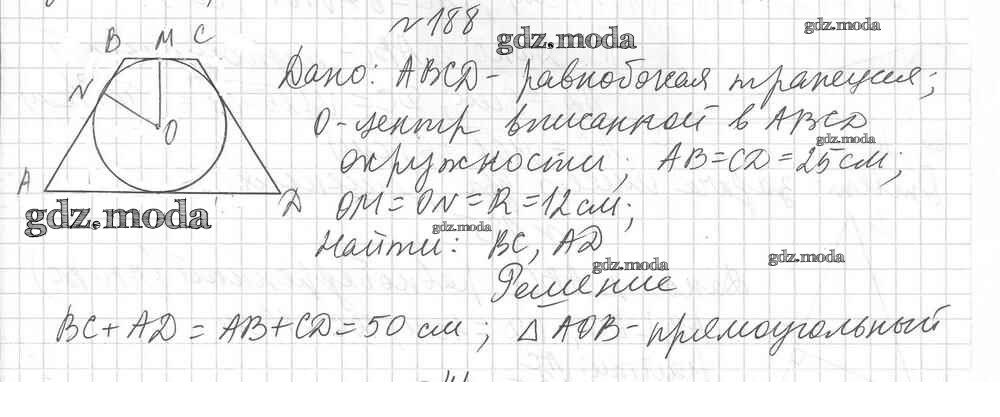 ОТВЕТ на задание № 188 Дидактические материалы по Геометрии 8 класс Мерзляк Алгоритм успеха