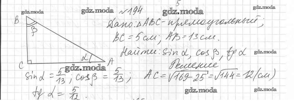 ОТВЕТ на задание № 194 Дидактические материалы по Геометрии 8 класс Мерзляк Алгоритм успеха