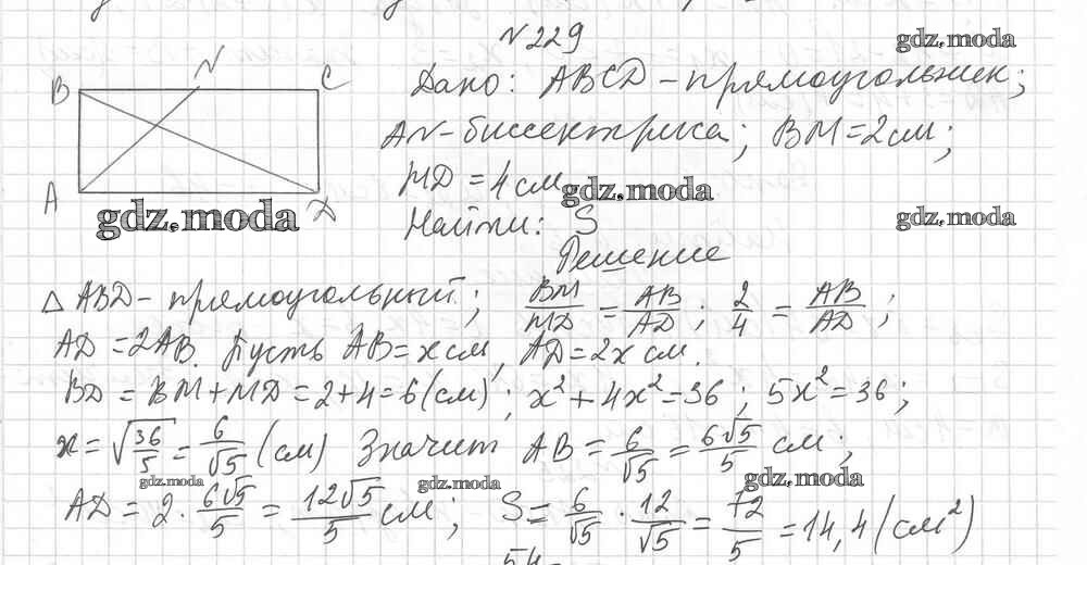ОТВЕТ на задание № 229 Дидактические материалы по Геометрии 8 класс Мерзляк Алгоритм успеха